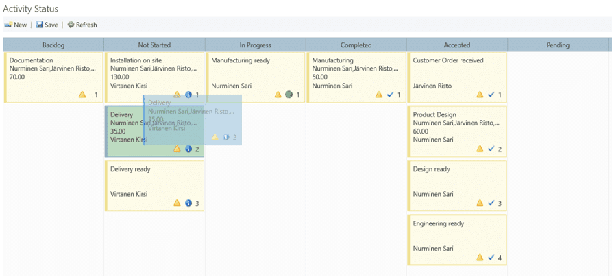 Työnkulun ohjaaminen ja töiden priorisointi onnistuvat samassa näkymässä siirtämällä hiirellä tehtävälaatikoita elinkaarivaiheesta toiseen ja haluttuun tärkeysjärjestykseen. Tavoitteena on ennustettava, keskeytyksetön ja imuohjauksella toimiva työnkulku, joka mahdollistaa nopean reagoinnin ja päätöksenteon.