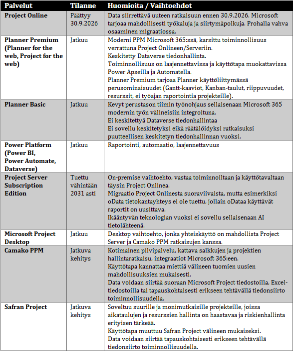 - Project Server Subscription Edition – pysyy Microsoftin tukemana ratkaisuna ainakin vuoteen 2031 asti.