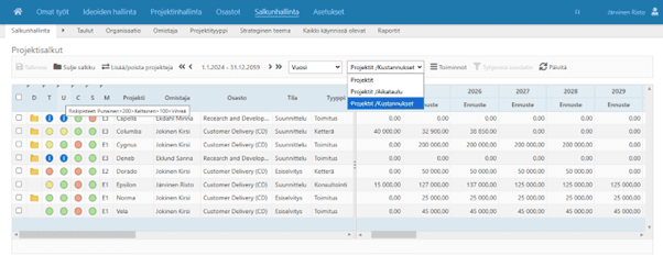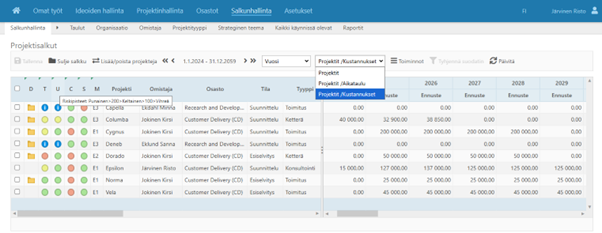 ● Dashboardit eri rooleille: projektipäälliköt, sponsorit, PMO