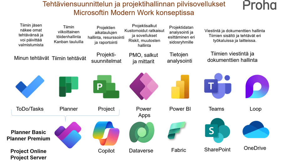 Proha PPM Elevate palvelun avulla organisaatiot voivat siirtyä nopeasti Microsoft Planner Basicista kohti integroitua ja skaalautuvaa projektinhallintaratkaisua. Tämä vähentää manuaalista työtä, tehostaa raportointia ja mahdollistaa tietoon perustuvan päätöksenteon.