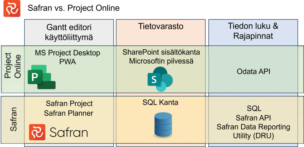 Safran Project on valmis ja laajasti käytetty ratkaisu, joka kilpailee suoraan Primaveran kanssa. Safran Project voidaan toimittaa Azure palveluna tai Prohan SaaS palvelukeskuksesta. Safraniin saadaan tuotua Microsoftin Project ohjelman aikataulut XML siirtotiedostoina. Kaikki Safran data mukaan lukien aikajaksotettu resurssi- ja Earned Value informaatio voidaan julkaista Safran Data Reporting Utilityn avulla Power BI:hin. Tästä ratkaisusta ei ole varsinaista SaaS palvelua suoraan Safranilta saatavilla, mutta voidaan hostata kuten edellä mainittu.